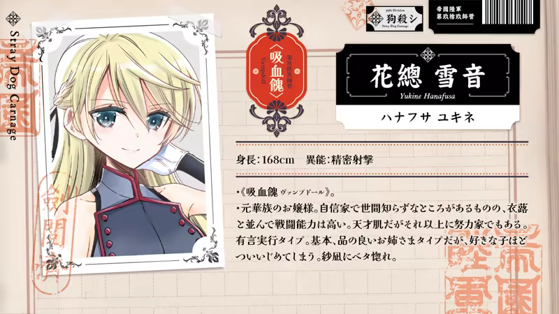 そこは 、少女の生き血を喰らう怪物〈吸血餽 ヴァンプドール 〉と呼ばれる少女兵と、