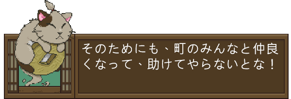 まぁ…ここは静かでいい町だったが、最近なんだか様子がおかしくてな!おまえさんに、悪さをしている精霊を見つけて悩みを解決してやってほしいんだ。そうすれば大人しくなって、風呂屋のお客になってくれる。 それに町の人たちと仲良くなれば、あちこちを探索できるようになるしな!